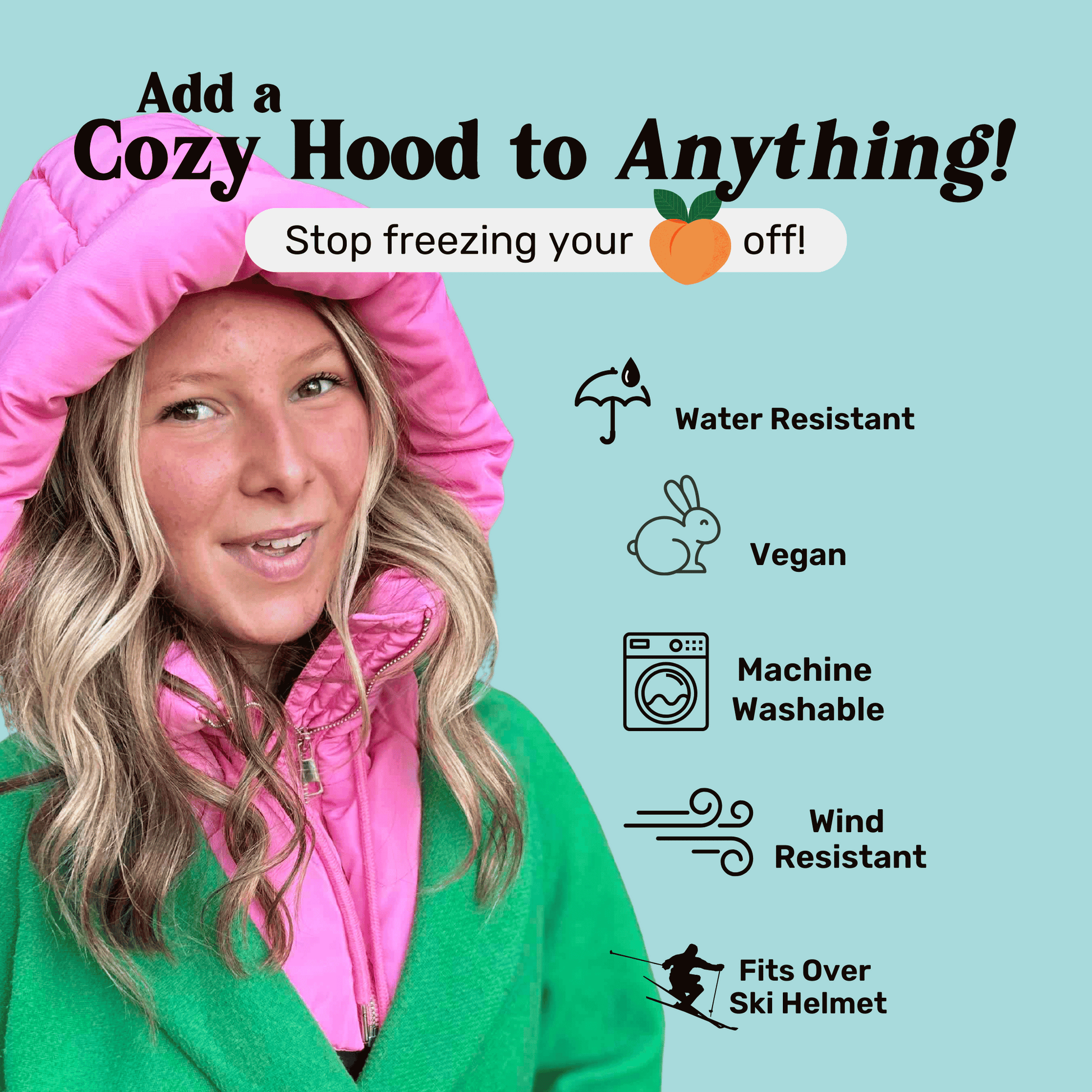 Lightweight, warm, and pretty darn cute. Add a hood to any coat, jacket, vest, whatever with our puffer balaclavas. Remember dickies? Yeah, they're like that, but for a hood. Available in pink, black, blue, green, cream, and orange.