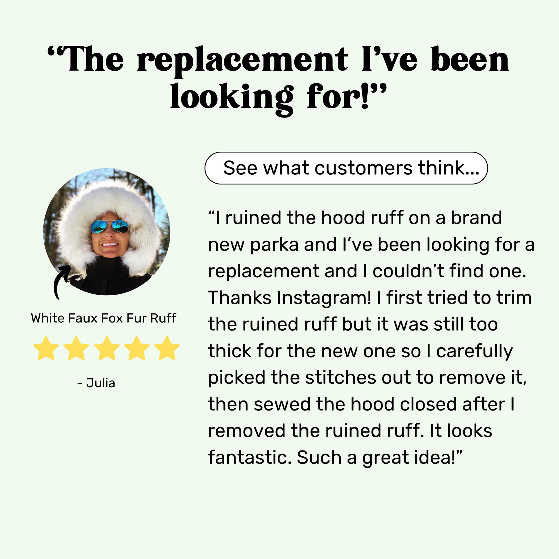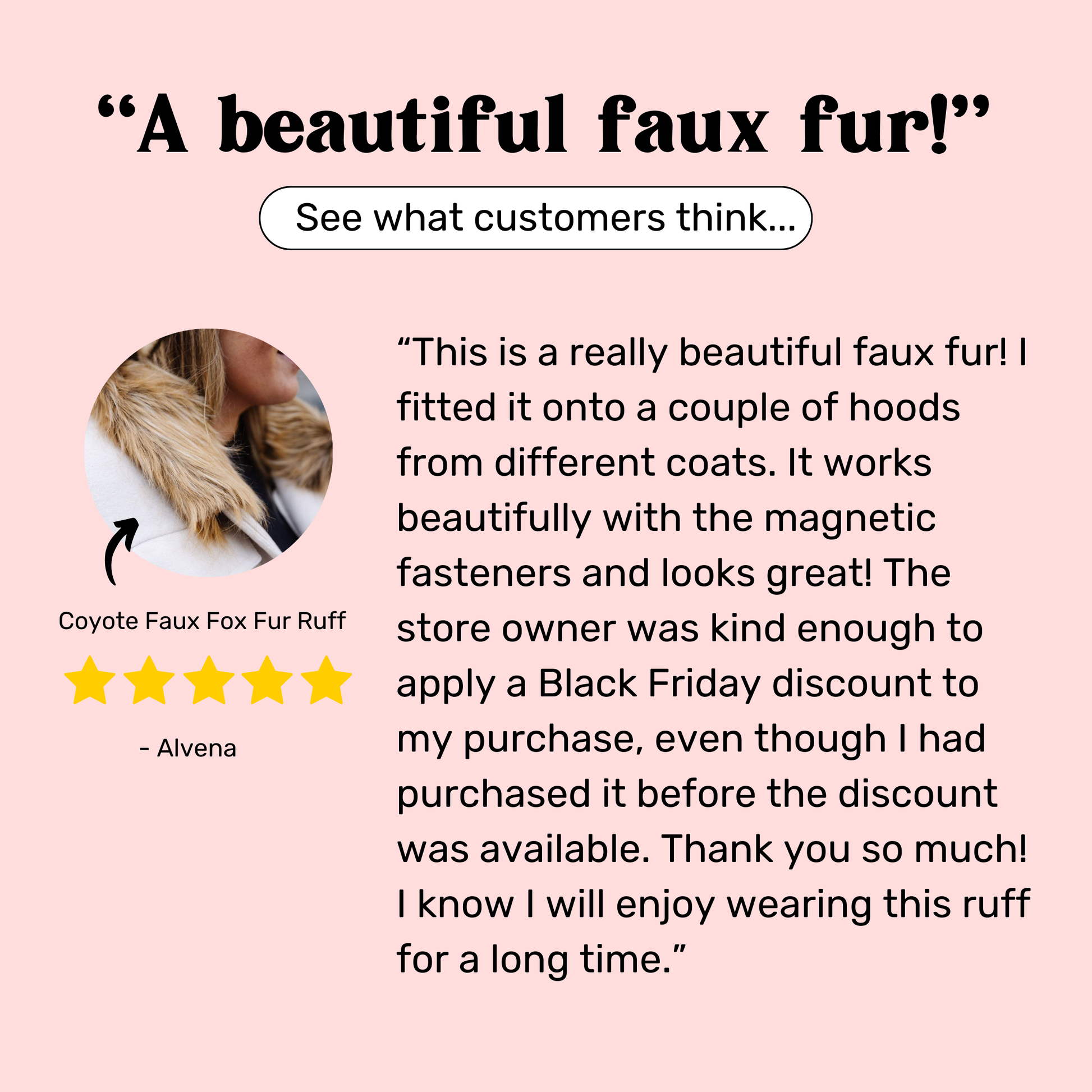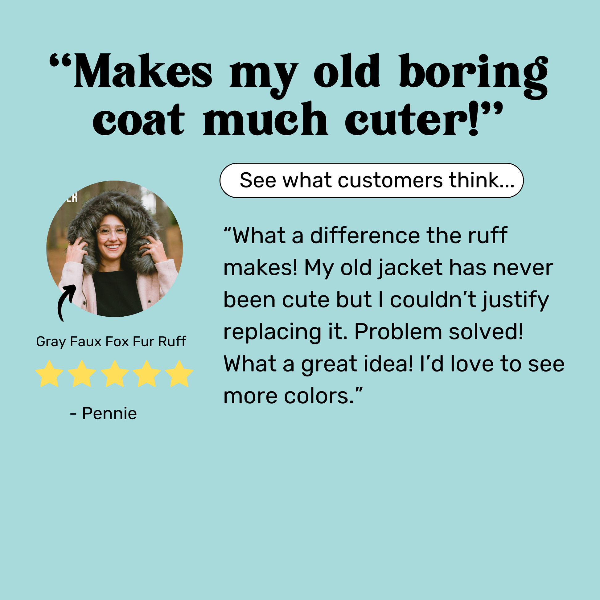 Add our faux fur ruff to any hood or collar using our patented magnetic design. Let us show you how.